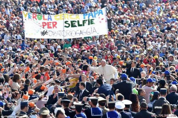 Nổi tiếng là người thân thiện và dễ mến, Giáo hoàng Francis được rất nhiều tín đồ ở khắp nơi trên thế giới ngưỡng mộ. Mới đây, tại quảng trường thành phố Vatican, nơi Giáo hoàng có lễ kỉ niệm Ngày đại xá, một nhóm tín đồ Công giáo đã giăng biểu ngữ xin Giáo hoàng kiểu ảnh selfie.
