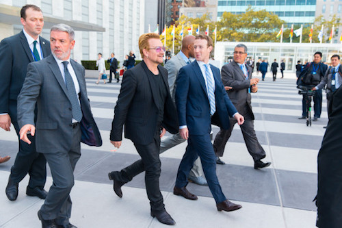 Mark Zuckerberg trong vòng bảo vệ của vệ sĩ.