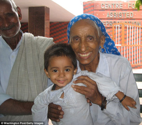 Ước có một đứa con do chính mình sinh ra. Cụ bà Dajinder Kaur 70 tuổisau 2 năm chữa vô sinh, bằng phương pháp thụ tinh trong ống nghiệm cụ đã sinh cậu con trai đầu lòng vào tháng trước.