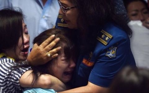Người thân của các nạn nhân trên chuyến bay QZ8501 an ủi nhau sau khi nghe tin buồn.