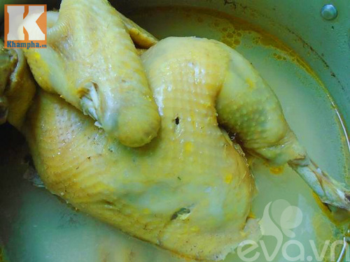 Bước 1: Gà ta cho vào nồi, đổ nước ngập gà, nêm 1 thìa bột canh rồi luộc chín. Khi gà chín vớt gà ra để ráo. Lấy một bát nước dùng gà đợi nguội để pha nước trộn.