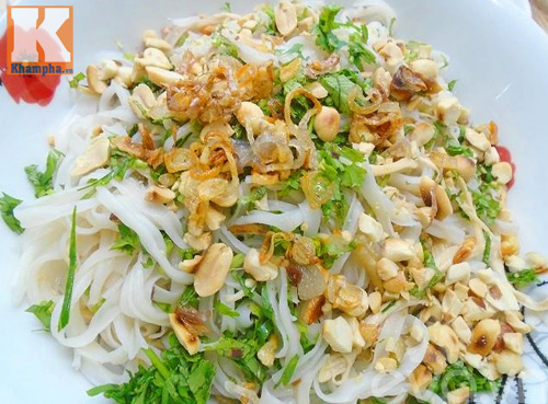 Bước 5: Từ từ rưới nước trộn phở nên, trộn đều rắc thêm ít hành khô phi giòn cùng lạc rang, ít rau thơm là được.