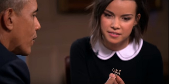 Ông Obama khoe một trong các món đồ lưu niệm hay giữ trong túi quần. Ảnh: YOUTUBE