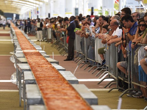 Tự hào là quê hương của piza, thành phố Naples của Ý đã chế biến thành công chiếc bánh pizza dài nhất hành tinh. Đây là kết quả của hơn 100 đầu bếp Ý. Chiếc pizza này dài 2km và được hoàn thành chỉ trong 11 tiếng.