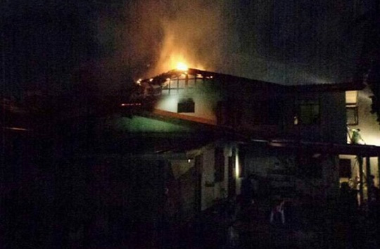 Đám cháy được nhìn thấy trên nóc nhà ký túc xá. Ảnh: Thai Rath