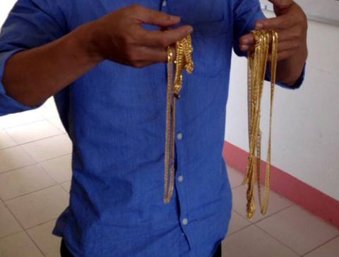 “Một số lần sau khi bán được nhiều vàng giả, chúng lại mua một ít nhẫn hoặc dây chuyền để nhận được hóa đơn. Sau đó tiếp tục đến tiệm vàng khác bán đồ giả nhưng trưng ra hóa đơn này nói vừa mua xong nhưng cần tiền gấp”, thiếu tá Nam kể.