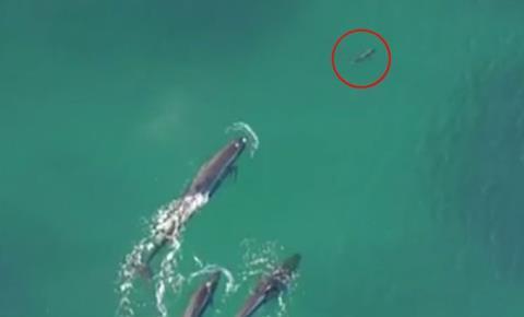 Cá mập bị cả đàn cá voi truy sát