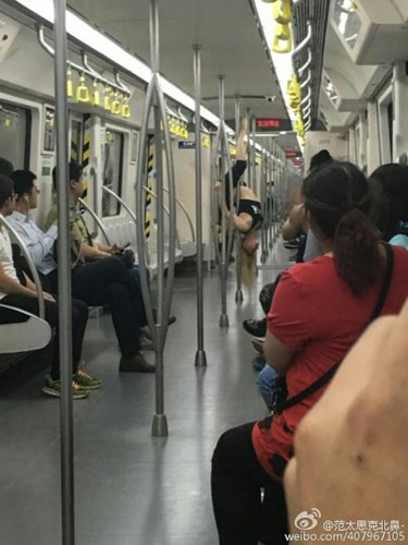 Hành khách ngỡ ngàng khi chứng kiến cô gái tóc vàng trình diễn múa cột suốt 20 phút trên một tuyến tàu điện ngầm ở thành phố Thiên Tân, Trung Quốc.