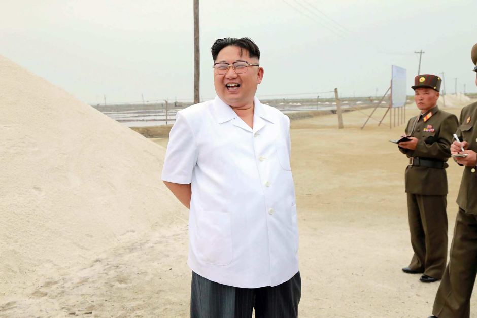 Kim Chính Vân thích chơi bóng rổ thời niên thiếu, khi bụng chưa bự như bây giờ. Trong hình, lãnh tụ Kim đang thăm Kwisong Saltern ở thành phố Nampo. (Getty Images)
