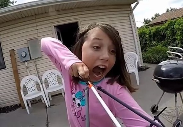 Cô bé Alexis tự tin bắn cung tên để chiếc răng trong miệng mình rơi ra ngoài.