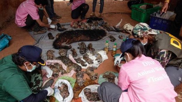 Sau nhiều ngày điều tra giới chức Thái lan đã phát hiện ra một ngôi chùa chứa hàng chục xác con hổ đã chết.Chùa này đã bị vào danh sách đen vì buôn lậu và sở hữu động vật quý hiếm.Chùa này có thể sẽ bị truy tố.