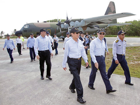 Giới lãnh đạo Đài Loan do ông Mã Anh Cửu dẫn đầu đến đảo Ba Bình trái phép, tháng 4.2016 REUTERS