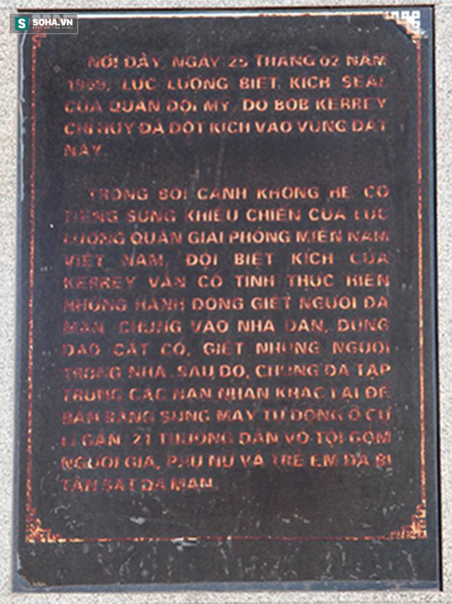 Nội dung trên bia tưởng niệm ghi rõ thời gian và người chỉ huy là ông Bob Kerrey.