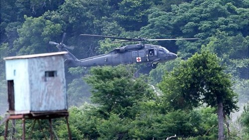 Trực thăng tìm kiếm các binh sĩ mất tích.