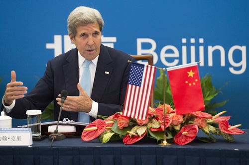 Ngoại trưởng Mỹ John Kerry hôm nay phát biểu trong Đối thoại Chiến lược và Kinh tế Mỹ - Trung ở Bắc Kinh. Ảnh: Reuters