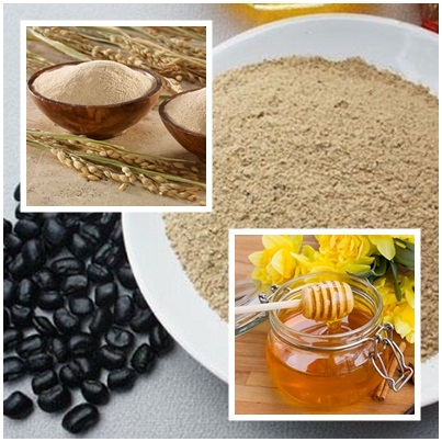 Bước 2: Trộn bộ đỗ đen vừa xay với bột cám gạo và mật ong thành một hỗn hợp sền sệt dùng để đắp mặt.