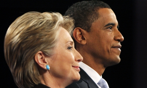Ứng viên tổng thống Mỹ đảng Dân chủ Hillary Clinton và Tổng thống Mỹ Obama. Ảnh: AP