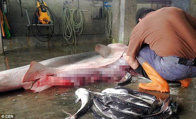 Ngư dân mổ bụng cá mập mẹ để cứu sống cá mập con.