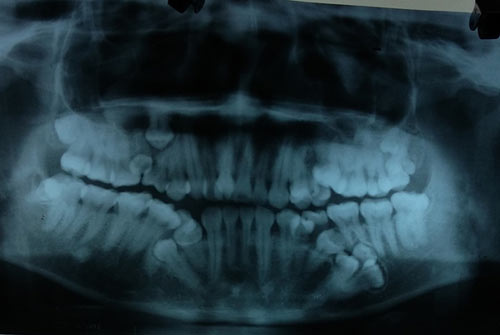 Hình ảnh chụp phim cho thấy bệnh nhân mọc thừa răng chi chít