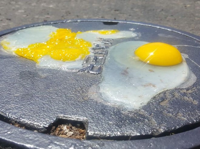 Tại thành phố Phoenix, bang Arizona, một nhóm người thử nấu trứng trên nắp cống kim loại bị phơi nắng. Kết quả thu được là món trứng rán đủ chín.