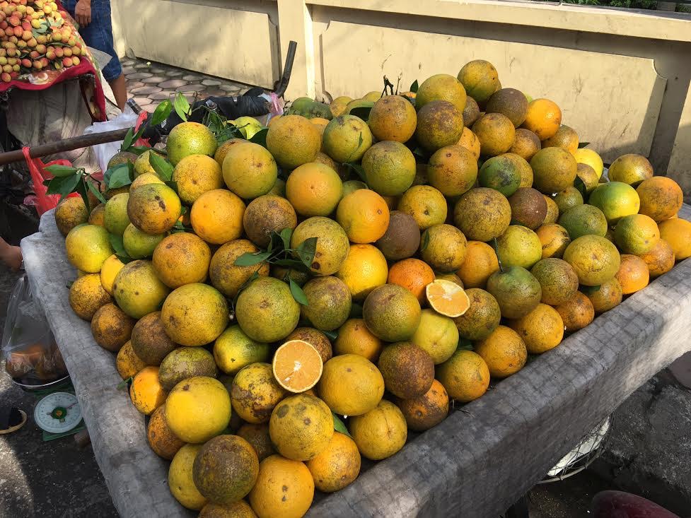 Tương tự, với mặt hàng cam, bà Lê Thị Yến, một đầu mối chuyên đổ buôn cam ở chợ Long Biên cho biết, cam Trung Quốc ở chợ có hai loại, 1 loại là cam bóc vỏ, loại còn lại là cam lòng vàng.