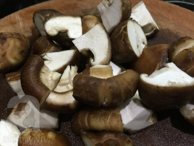 Tiếp theo cho nấm hương vào om cùng khoảng 5-7 phút rồi tắt bếp.