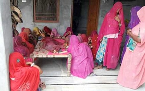 Người thân đau đớn ngồi quanh thi thể cô bé Ravina.