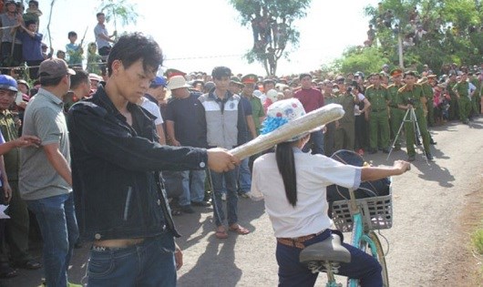Sự việc dựng lại hiện trường vụ án của cơ quan công an đã khiến cho hàng trăm người dân quan tâm, kéo đến theo dõi. Trước vẻ mặt lạnh lùng của hai nghi can là hàng trăm ánh mắt hoang mang, thảng thốt, người lớn thì căm phẫn, trẻ em thì lo sợ. Bất cứ ai cũng xót xa và bức xúc thay cho gia đình bị hại.