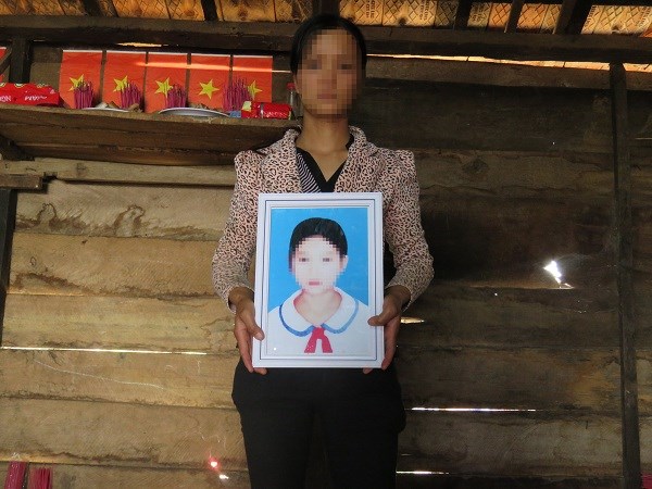 Chị Tô Thị Quỳnh ôm di ảnh con gái