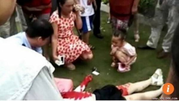Bi kịch xảy ra ở tình Giang Tô, miền Đông Trung Quốc. Cảnh tượng kinh hoàng chưa từng thấy với người vợ bị chồng cắt cổ họng nằm ngất trên bãi cỏ máu chảy đầm đìa. Nhân chứng cho biết hai vợ chồng đợi đón con rồi cãi nhau kịch liệt và người chồng đã vung dao cắt cổ họng vợ.