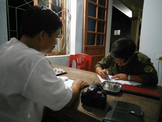 Công an xã Phúc Đồng lấy lời khai bác sỹ Quốc ngay trong đêm. Ảnh: Xuân Đức.