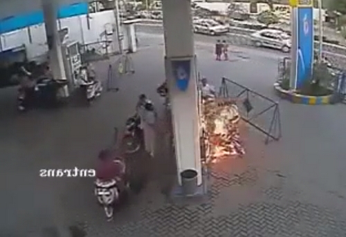 Thành bó đuốc sống vì nghe điện thoại ở trạm xăng (Ảnh: Internet)