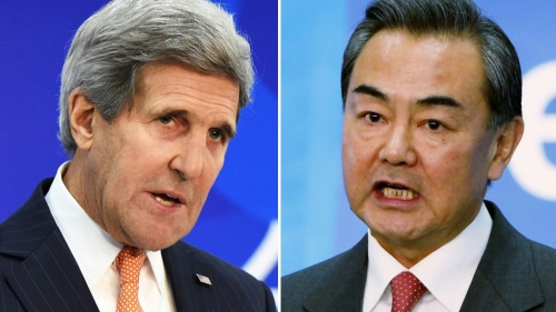Ngoại trưởng Mỹ John Kerry và người đồng nhiệm Trung Quốc Vương Nghị. Ảnh: AFP/Xinhua