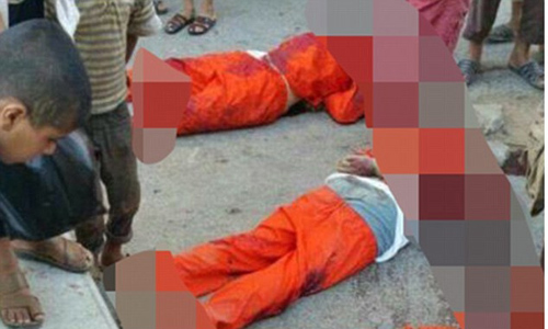 Các hình ảnh hành quyết – trong đó có ảnh những đứa trẻ ngồi xem các thi thể - được đăng trên một tài khoản Twitter của khủng bố.