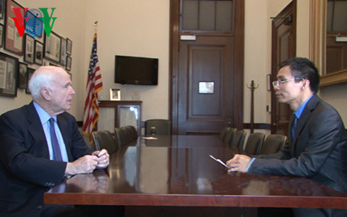 Thượng nghị sỹ Mỹ John McCain tại một buổi trả lời phỏng vấn của VOV.
