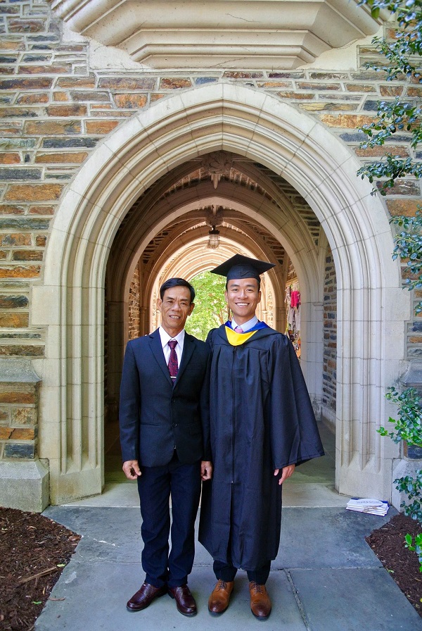 Quang vừa tốt nghiệp ĐH Duke vào tháng 5 vừa qua, người cha “một nắng hai sương” của Quang đã bay sang Mỹ để chứng kiến ngày nhận bằng của con trai. Đó là một chuyến đi đầy thử thách với ông – lần đầu tiên đi máy bay, lần đầu tiên ra nước ngoài một mình. Sau lễ tốt nghiệp, Quang dẫn bố đi thăm thủ đô Washington và thành phố New York.