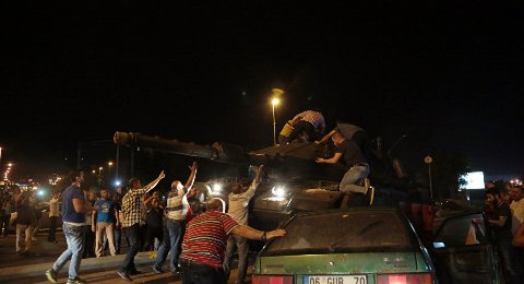 Một nhóm sĩ quan Thổ Nhĩ Kỳ đã nổi dậy và chiếm đóng nhiều nơi chủ chốt ở thủ đô Thổ Nhĩ Kỳ. Tuy nhiên, cuộc đảo chính đã bất thành khi người dân đổ xuống chống lại những binh sĩ này.