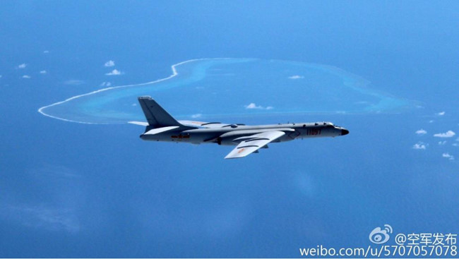 Trung Quốc khoe hình ảnh máy bay ném bom H-6K bay qua bãi cạn Scarborough ở Biển Đông mới đây nhằm thách thức Mỹ