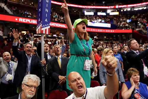 Ngay sau khi phiên họp ngày thứ hai của RNC diễn ra, những người phản đối ông Trump đã hô vang "Bỏ phiếu điểm danh" trong hơn 10 phút nhằm làm gián đoạn các quy trình của đại hội, tuy nhiên nỗ lực ngăn cản việc ông Trump trở thành ứng viên của đảng đã không thành công.