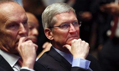 Tổng giám đốc điều hành Apple Tim Cook (phải). Ảnh: AFP