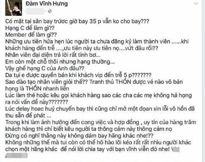 Không chỉ vậy, nhân viên này còn dùng thái độ “tỉnh bơ” khi đáp lại những thắc mắc của Đàm Vĩnh Hưng và thông báo anh đã đến muộn 5 phút. Mr Đàm cũng cho rằng các nhân viên có ý tư lợi. Điều này hoàn toàn không đúng với những hứa hẹn của hãng hàng không khi khách làm thẻ thành viên.