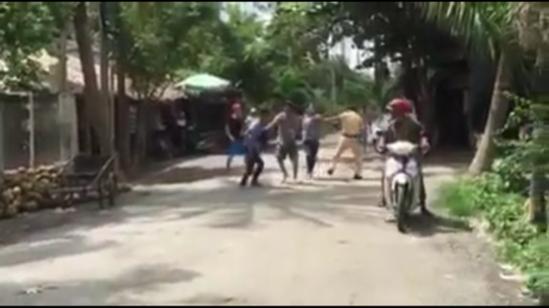 Đến khi người dân ra can ngăn thì các đối tượng mới bỏ đi. Toàn bộ sự việc được một người dân ghi hình lại, sau đó tung lên mạng xã hội.