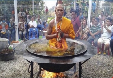 Trong phòng thí nghiệm của mình, ông Jessada đổ nước và dầu cọ vào nửa lọ và đặt trên một cái đĩa nóng. Một lúc sau, ông nhúng ngón tay của mình vào lớp dầu phía trên mà không chịu thương tích gì. Lớp nước ở phía dưới đã hấp thụ nhiệt. Nước được đun lên tạo các bọt khí bay lên, tạo cảm giác như dầu đang sôi. Jessada cho biết: “Nhiều nhà sư đã sử dụng cách này để lừa những người cả tin. Họ bôi nhọ Phật giáo bằng cách lừa dối để được danh tiếng và tài sản”.