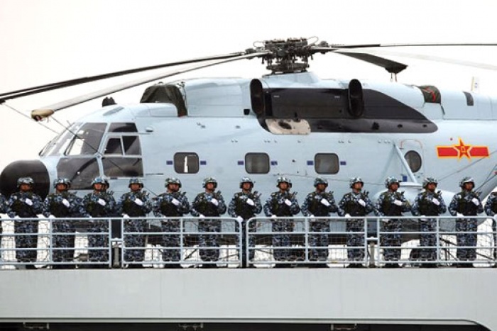 Binh lính Trung Quốc đứng trên một tàu chiến