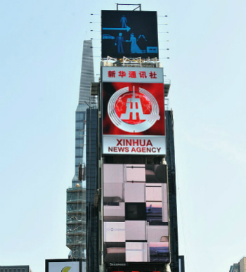 Màn hình hiển thị quảng cáo của hãng thông tấn nhà nước Trung Quốc Xinhua tại Quảng trường Thời đại. Ảnh: AFP