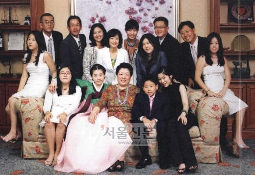 Han Sung Joo (thứ 3 từ trái qua, hàng trên) trong ảnh đại gia đình của tập đoàn Aekyung