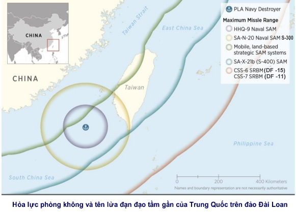 Lực lượng phòng không của Đài Loan khá mỏng, Đài Loan có 3 khẩu đội tên lửa Patrion PAC-2 (nâng cấp lên PAC-3), 6 khẩu đội Sky Bow và khoảng 20 khẩu đội MIM-23 HAWK, 24 khẩu đội súng phòng không Skyguard của Thụy Điển. Rõ ràng lực lượng này không đủ để đối phó với cuộc không kích ồ ạt của không quân Trung Quốc.