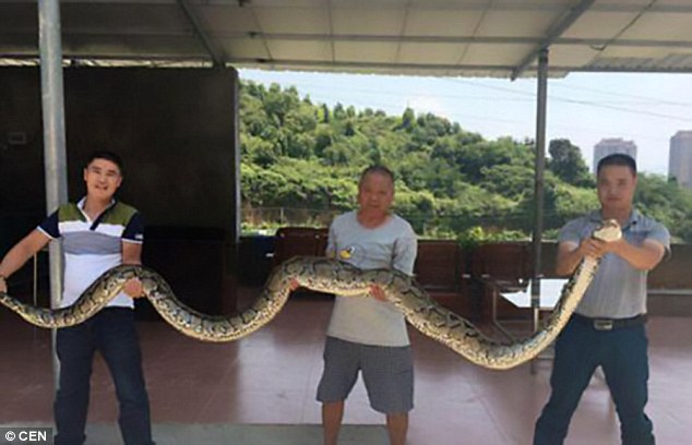 Theo đó, thông tin trên Daiy Mail đưa tin cho biết tối ngày 26/7, những người dân tại thôn Trân Sơn, huyện An Khê, Tuyền Châu, Phúc Kiến, Trung Quốc đã bắt được một con trăn khủng dài 4m.