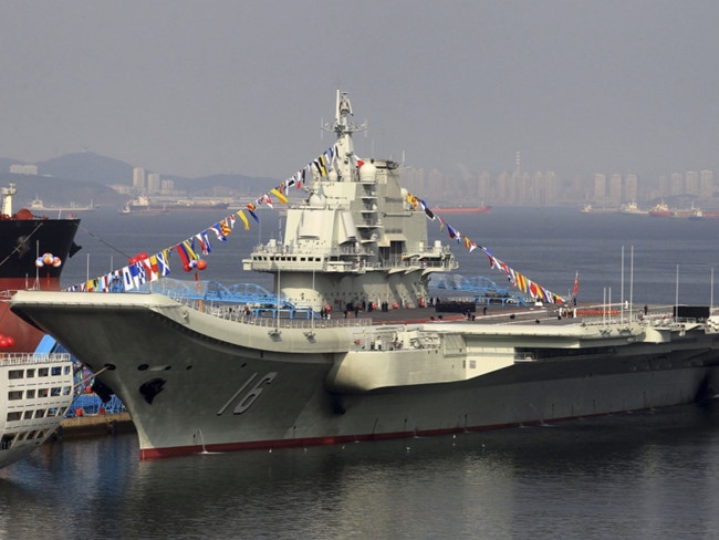 Tàu sân bay Liêu Ninh của Trung Quốc. Nước này có kế hoạch tự đóng thêm hai tàu sân bay dựa trên thiết kế của tàu Liêu Ninh