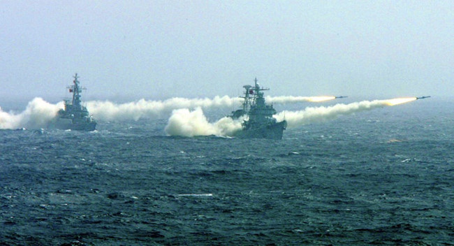 Chiến hạm hải quân Trung Quốc phóng tên lửa trong cuộc tập trận